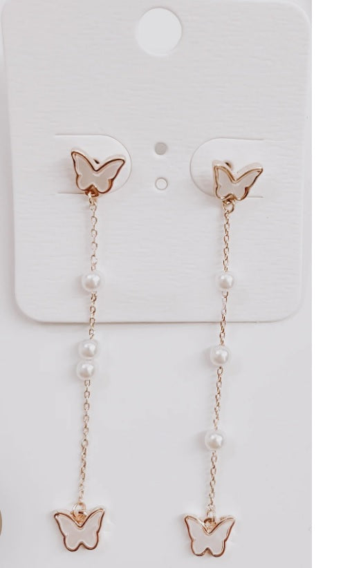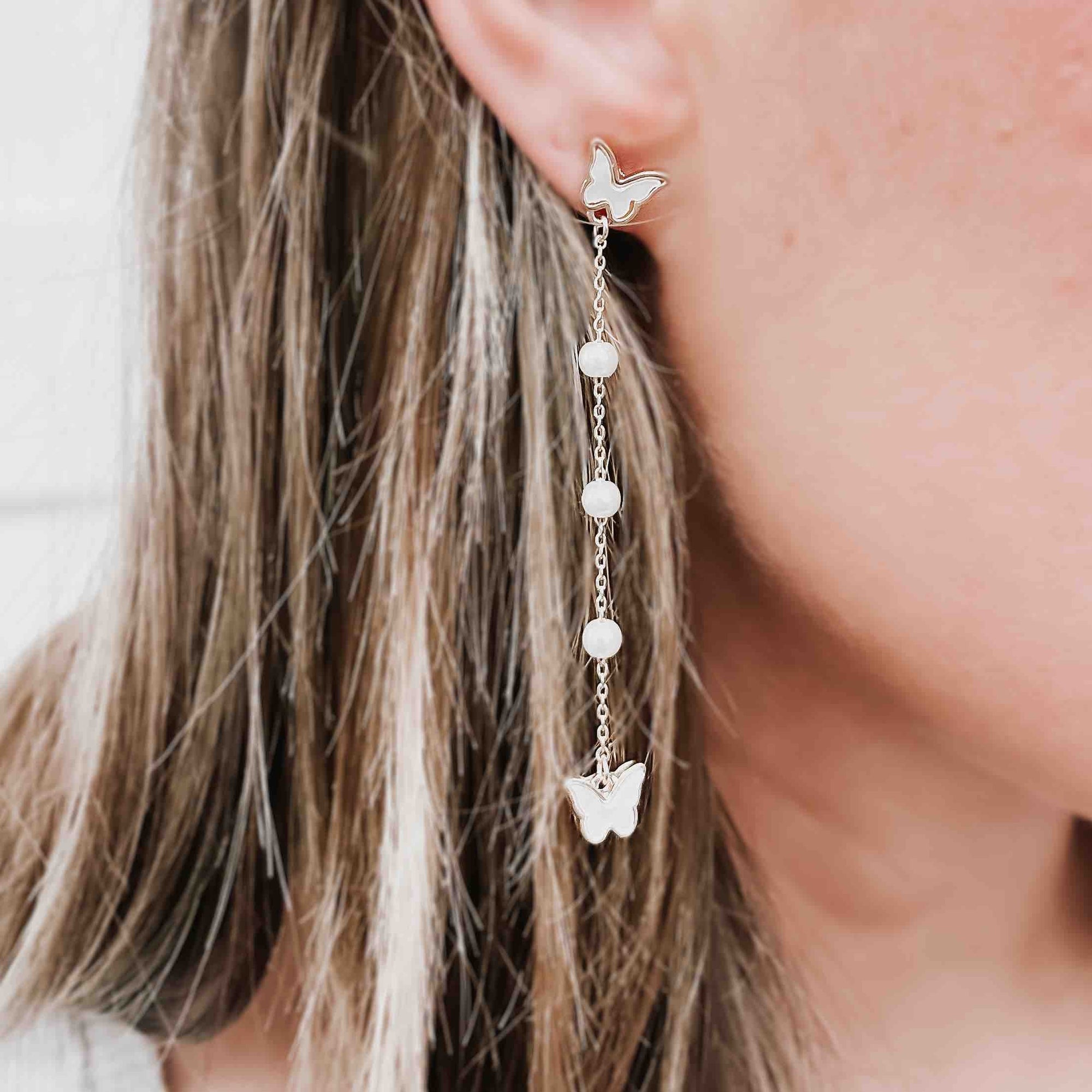 Pretty Simple - Everlasting Charm Pearl Drop Earrings - Butterfly