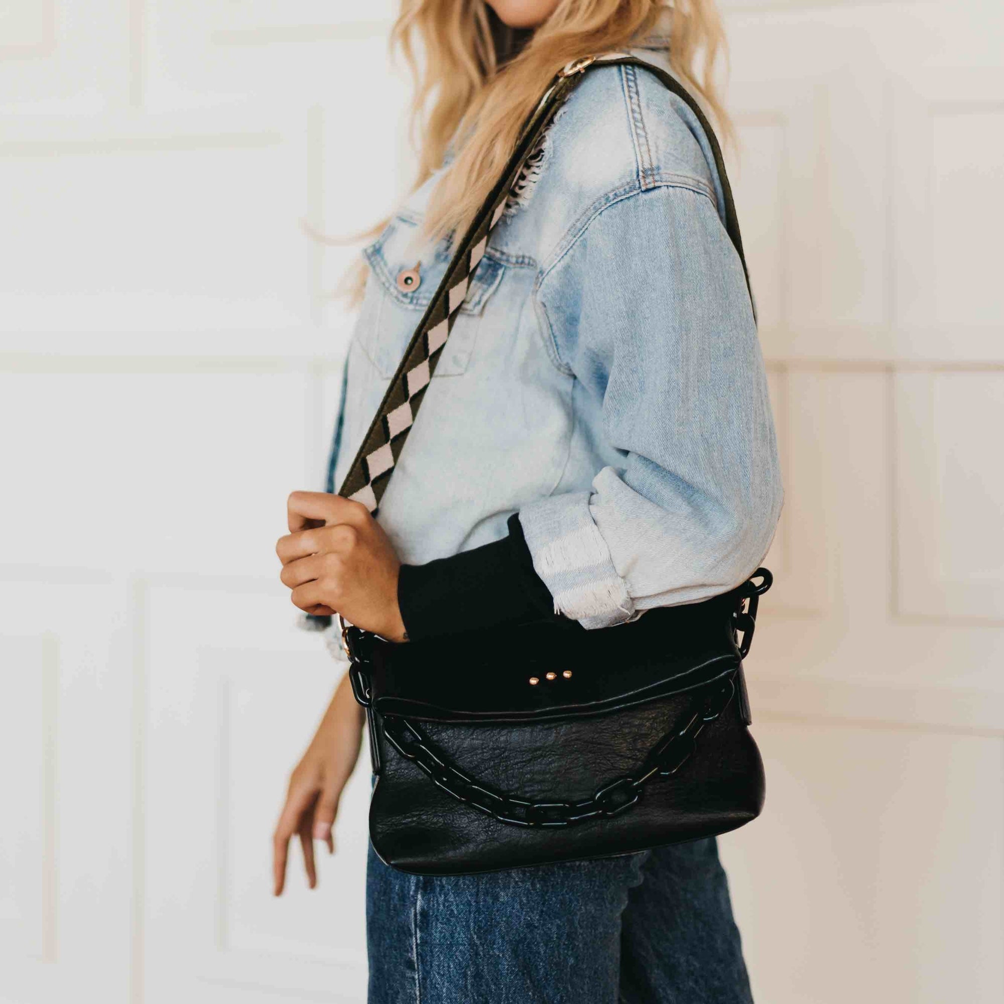 Jen&Co. Asymmetrical Vegan Leather Crossbody Bag – Chain & Guitar Strap